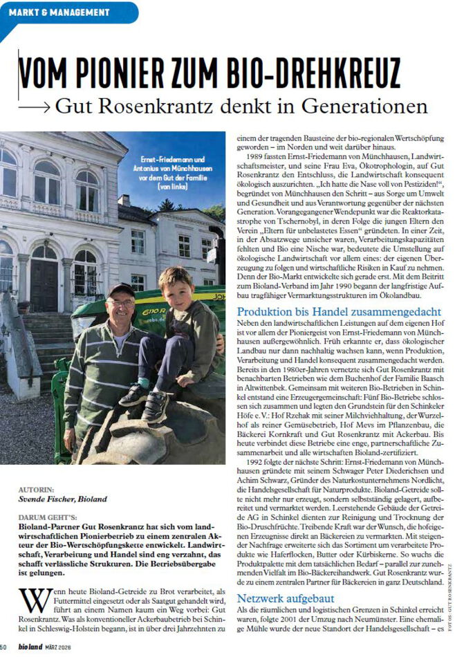 News März 2026 - Ein Artikel über Gut Rosenkrantz im Bioland Fachmagazin - für mehr klickt hier >>