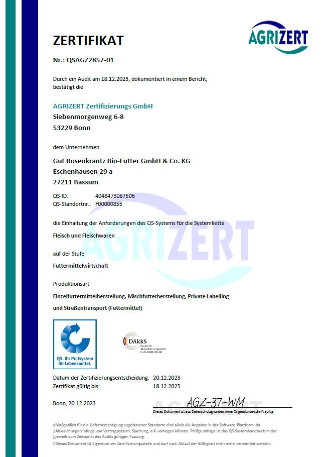ZERTIFIZIERUNGEN DER BIO-FUTTER GMBH & CO. KG