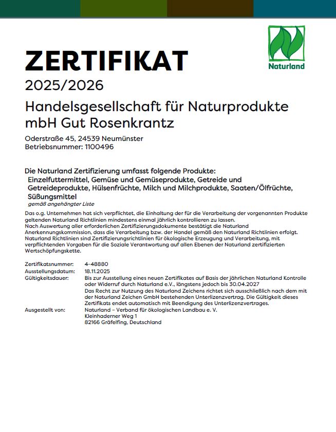 ZERTIFIZIERUNGEN DER GUT ROSENKRANTZ HANDELSGESELLSCHAFT