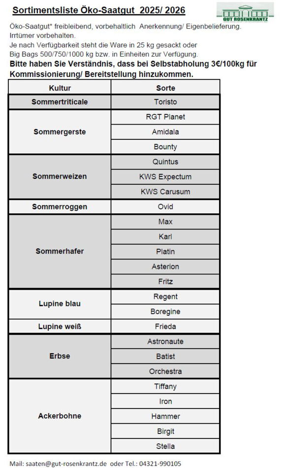 Wir vertreiben ein umfangreiches Sortiment an Bio-Saatgut, Dünge- und Betriebsmitteln. Neben eigenvermehrtem Getreide und Grobleguminosen, können Sie auch Ölfrüchte, Mais und vielfältige Zwischenfrucht- und Grünlandmischungen, sowie Einzelkomponenten über uns beziehen.